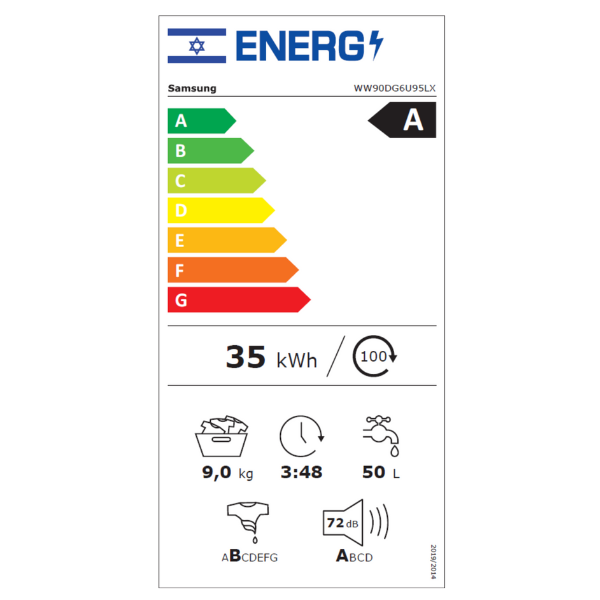 *** מבוסס על בדיקות פנימיות על דגם WW11BB944AGB בתנאי שימוש רגילים. התוצאות עשויות להשתנות בהתאם לתנאי השימוש בפועל.
