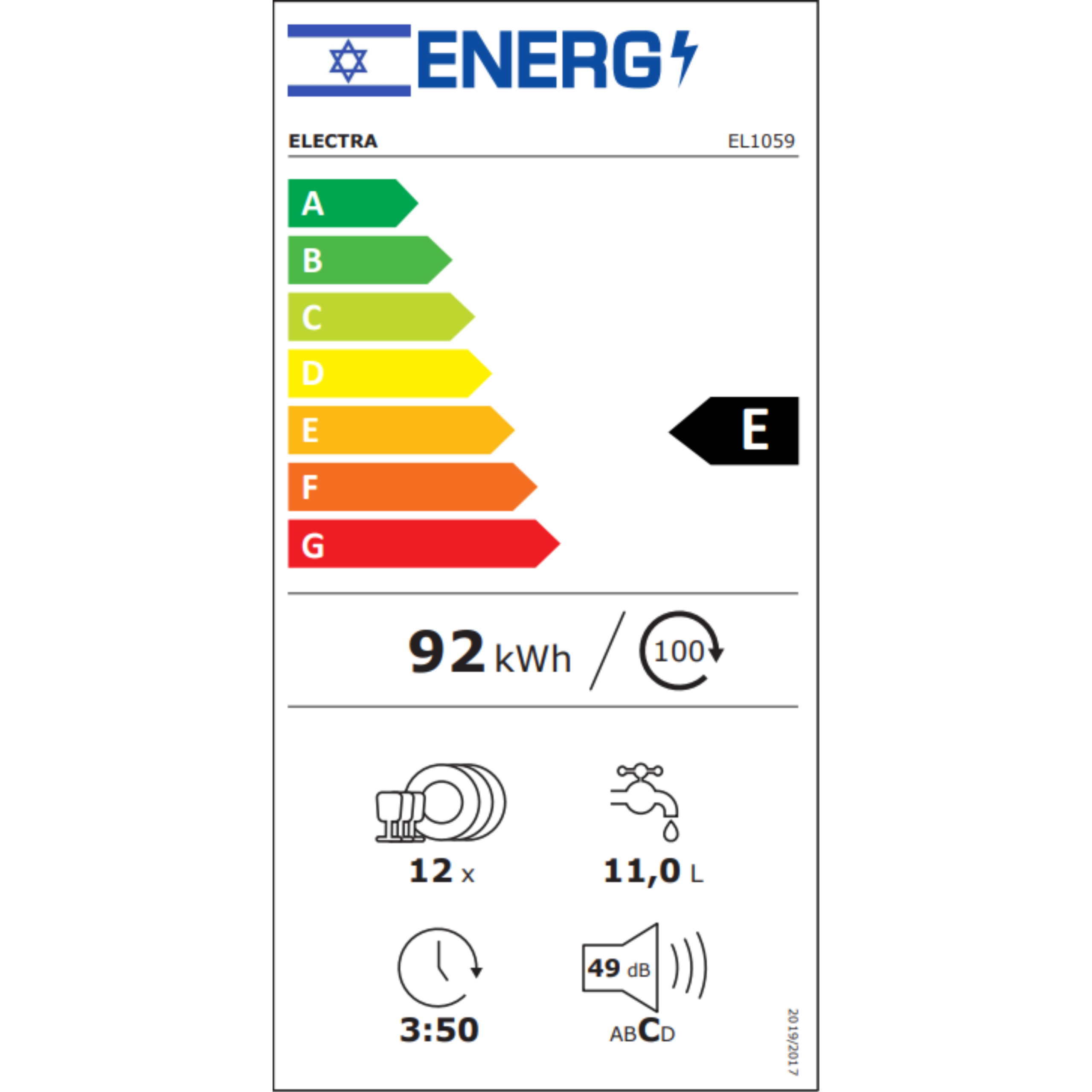 מדיח כלים אינטגראלי 12 מערכות כלים Electra EL1059 – אחריות ע”י היבואן הרשמי